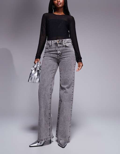 River Island wide leg jean with detachable belt in grey