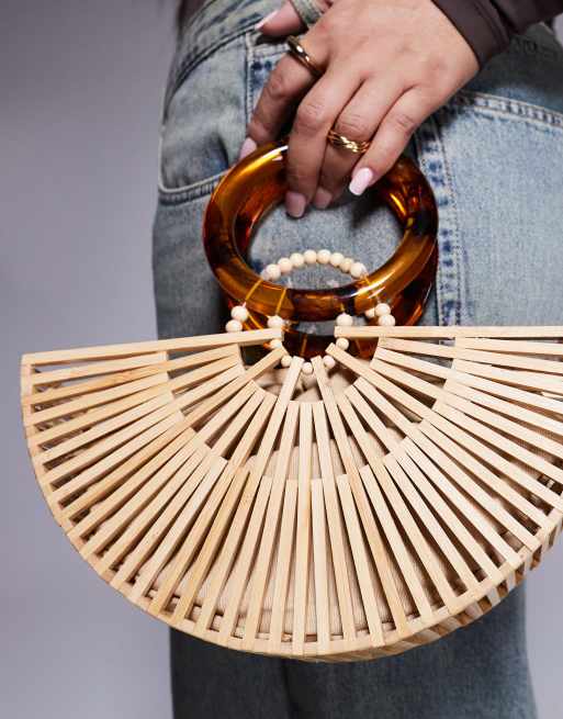 River Island wooden basket bag in brown