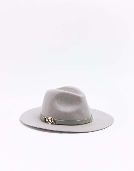 River Island Wool blend fedora hat in grey - light