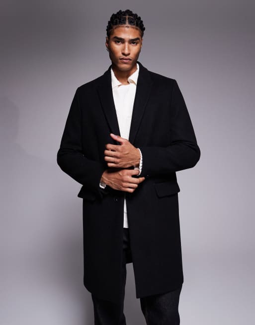 River Island wool look overcoat in black