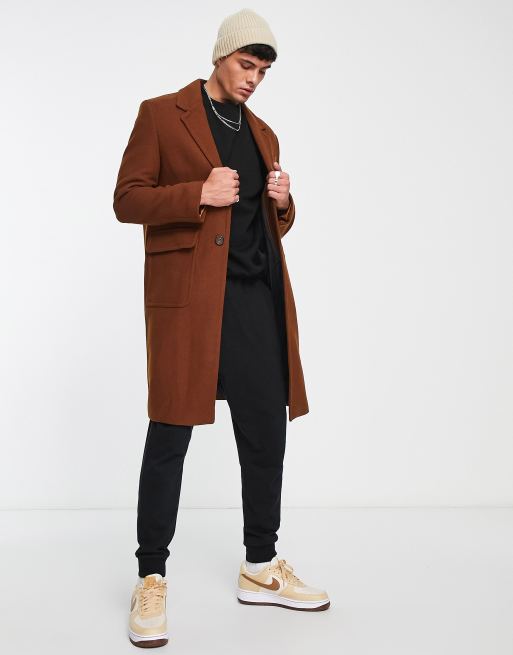 River Island wool mix overcoat in rust