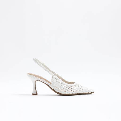 River Island Woven sling back court heels in white