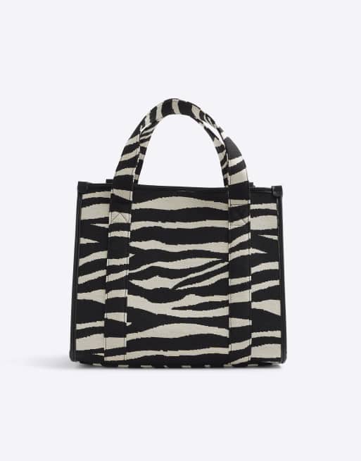 River Island Zebra embroidered tote bag in black