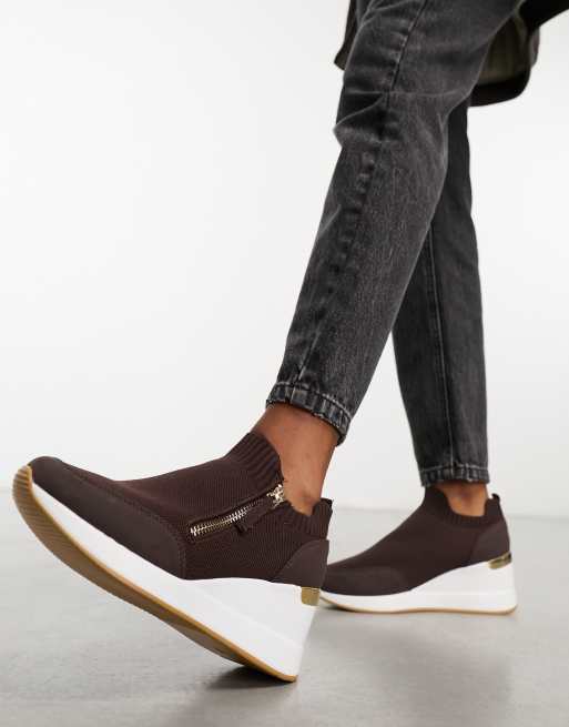 River Island Zip Wedge Runner in Brown