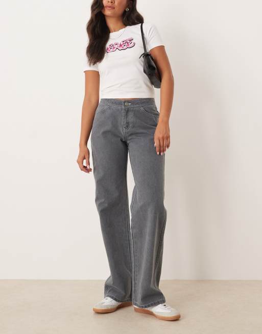 Roxy Chloe kim pop stitch low rise relaxed straight leg trousers in true black