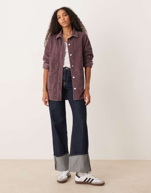 Roxy Kick back washed cord button down shirt jacket in huckleberry