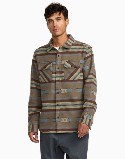 RVCA Dayshift blanket flannel long sleeve shirt in mushroom