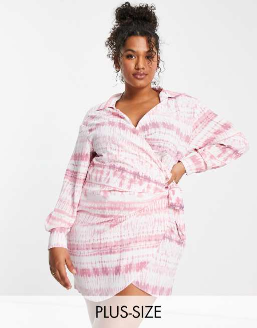 Saint Genies Plus tie side shirt mini dress in pink print