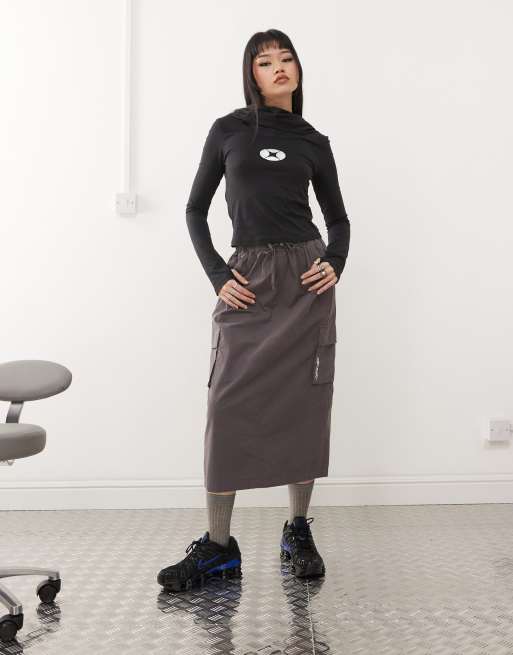 Santa Cruz midi cargo skirt in brown