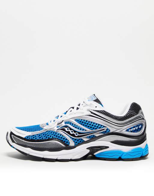 Saucony Progrid Omni 9 trainers in royal and silver