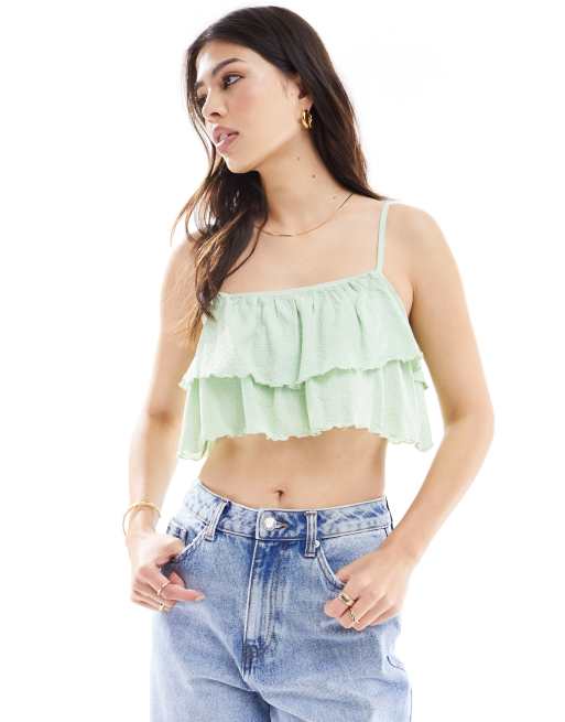 Scalpers ruffle bra t-shirt in light green