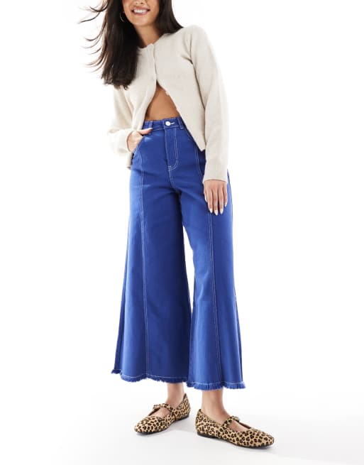Scalpers Stitching Culotte Denim Pant In Blue