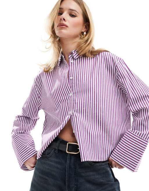 Scalpers Studs Shirt In Purple Stripes