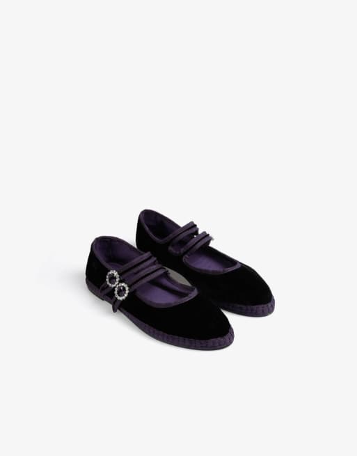 Scalpers Velvet Double Strap Slipper In Purple