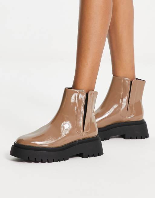 Schuh Axel chunky ankle boots in patent taupe