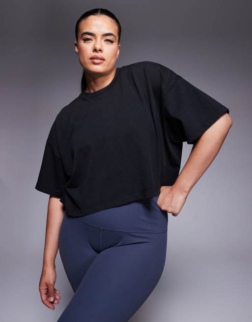 4505 Curve – Icon – Svart, tvättad t-shirt i kraftig bomull med kort design och snabbtorkande finish