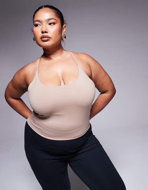 4505 Curve – Icon – Yoga – Beige, mjuk crop top med smala axelband och inbyggd behå