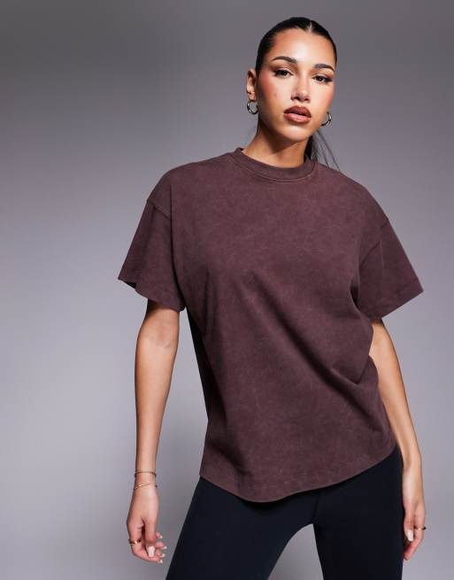 4505 – Icon – Brun, tvättad t-shirt i kraftig bomull och oversize med snabbtorkande finish