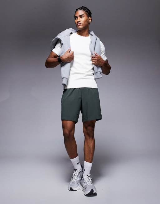 4505 – Icon – Mörkt kakifärgade, snabbtorkande träningsshorts med dragkedjefickor och 7 tum benlängd