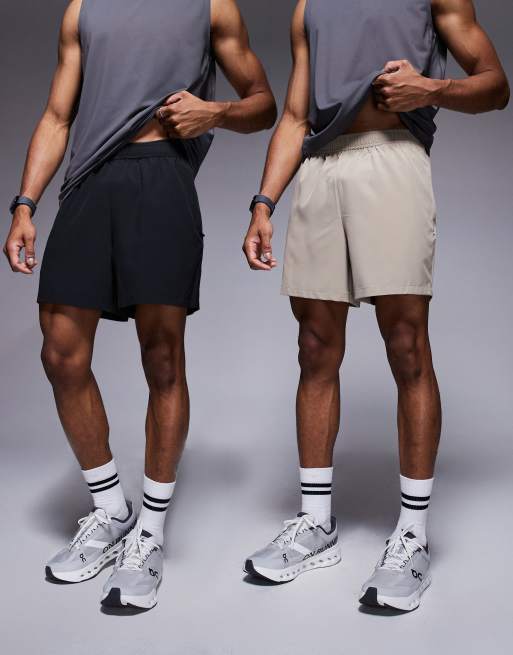 4505 – Icon – Svarta och ljusbeige, snabbtorkande träningsshorts med dragkedjefickor och 13 cm benlängd, 2-pack