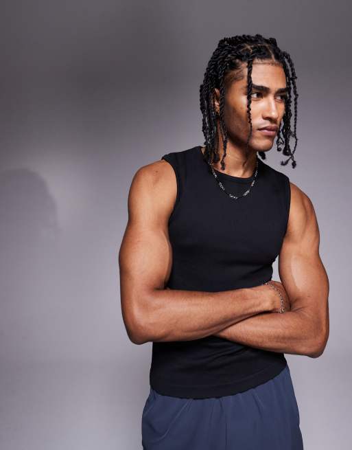 4505 – Svart, ribbat linne i sömlös design med smal passform