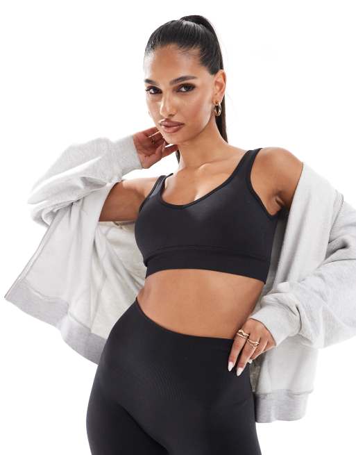 4505 – Svart sportbehå i seamless-design med v-ringning och medium stöd