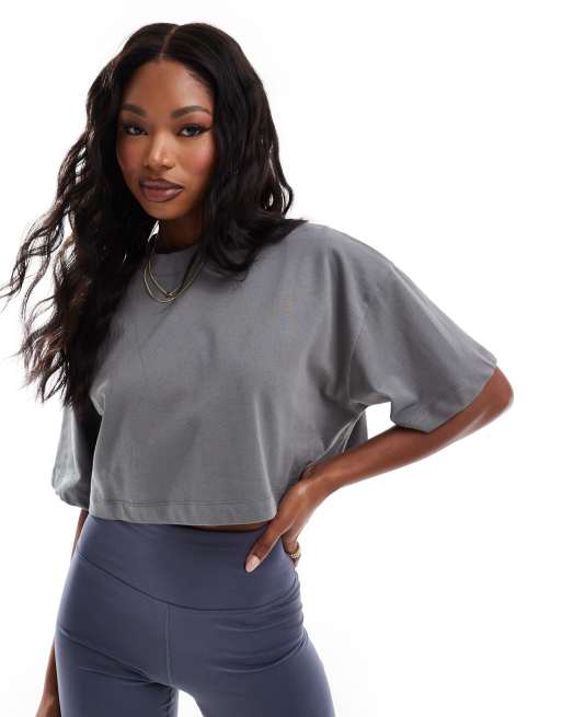 ASOS 4505 – Icon – Grå, kraftig, kort, snabbtorkande t-shirt med boxig passform