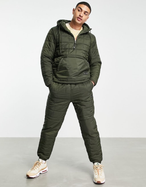 ASOS 4505 – Khakigrönt, vadderat set med jacka och quiltade mjukisbyxor