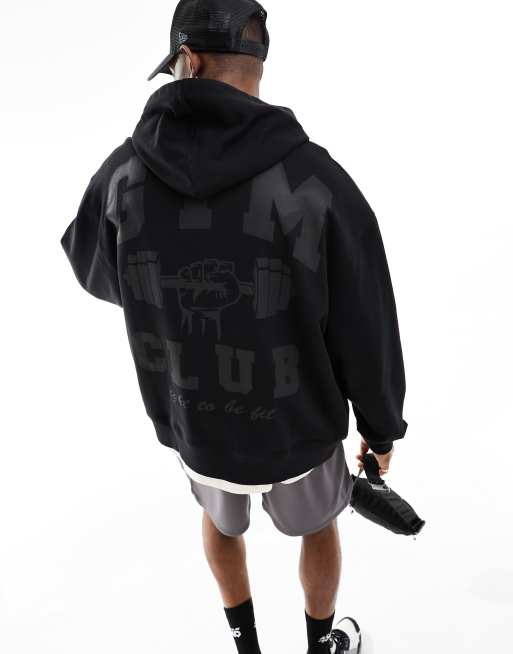 ASOS 4505 – Svart tränings-huvtröja med tryck baktill