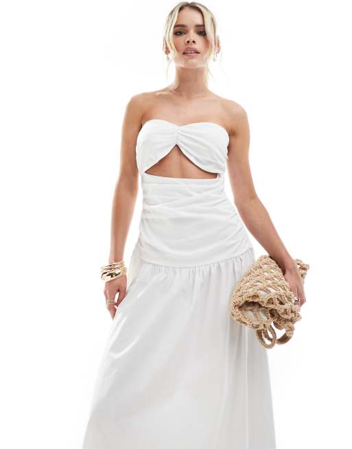 4th & Reckless Petite – Vit maxiklänning i bandeaustil med utskurna detaljer och rysch, exklusivt hos ASOS
