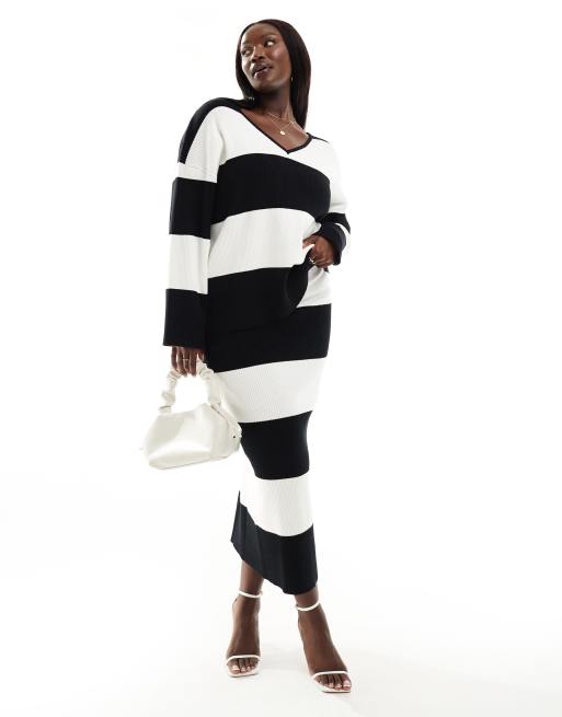 4th & Reckless Plus – Exklusivt – Svartvit, randig tröja i oversize med v-ringning, del av set