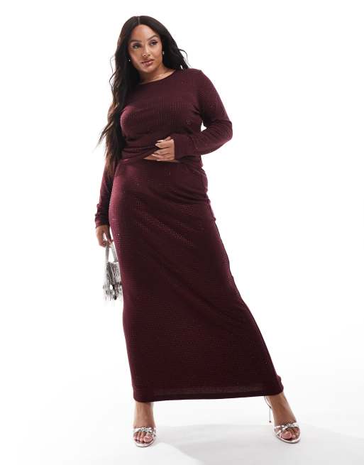 4th & Reckless Plus – Vinröd maxikjol med heltäckande strass, del av set
