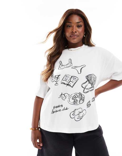 4th & Reckless Plus – Vit t-shirt med Leisure Club-tryck