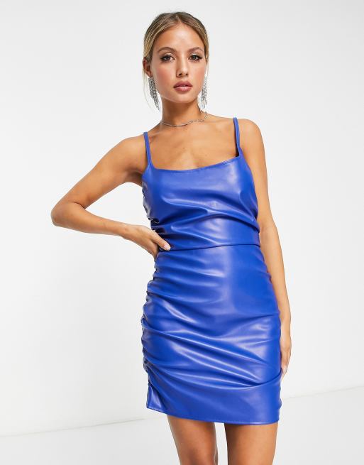 4th & Reckless – Blå miniklänning med remmar i läderlook, del av set
