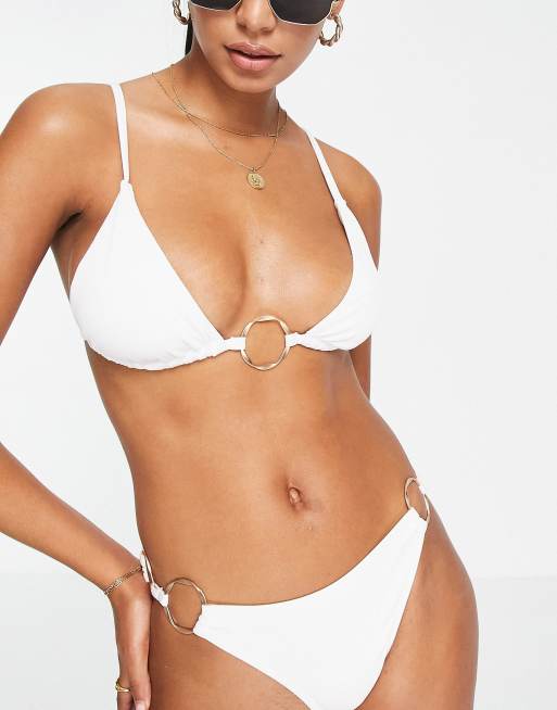4th & Reckless – Kelly – Vit ribbad bikiniöverdel med ring
