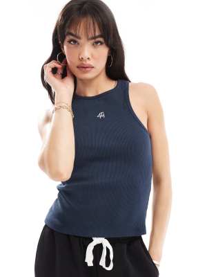 4th & Reckless – Marinblått, ribbat sportlinne med logga