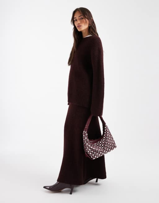 4th & Reckless – Plommonlila, ribbstickad tröja i oversize med vida ärmar i ylletyg, del av set