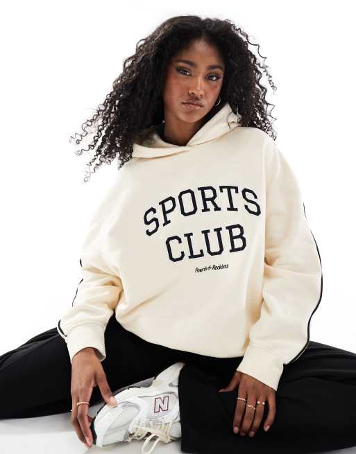 4th & Reckless – Sports Club – Gräddvit huvtröja med kontrastärm och broderad logga