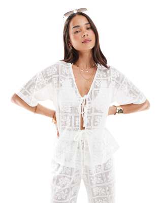 4th & Reckless – Vit, virkad strandtopp med knytning framtill