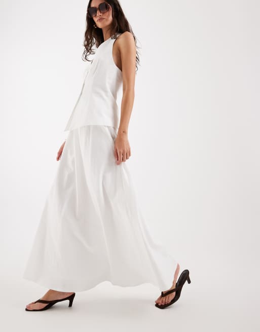 4th & Reckless – Vitt set i bomull med kostymväst med halterneck och maxikjol