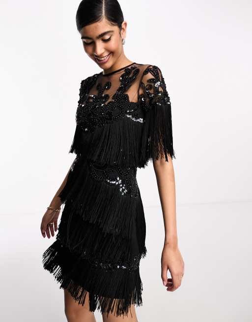 A Star is Born – Svart, utsmyckad miniklänning med fransar