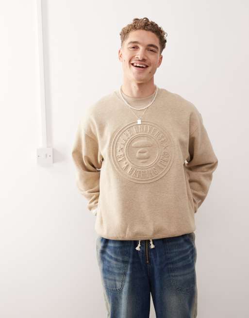 AAPE By A Bathing Ape® – Beige sweatshirt med präglad logga