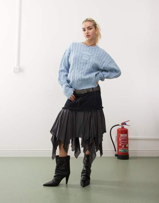 Aape By A Bathing Ape – Ljusblå, stickad sweatshirt med logga