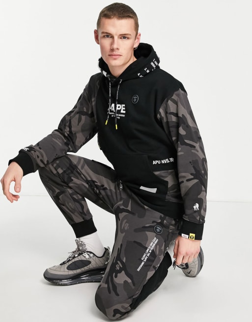 AAPE By A Bathing Ape – Svart blockfärgat set i sweatshirttyg med kamouflagemönster