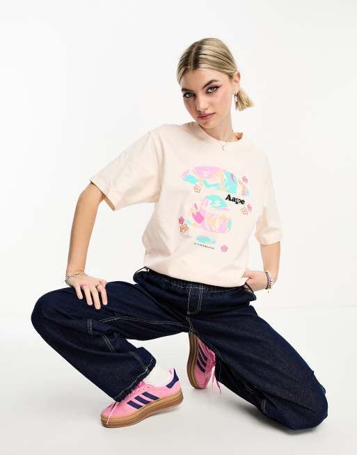 AAPE By A Bathing Ape – Vit t-shirt med kamouflagemönstrad logga