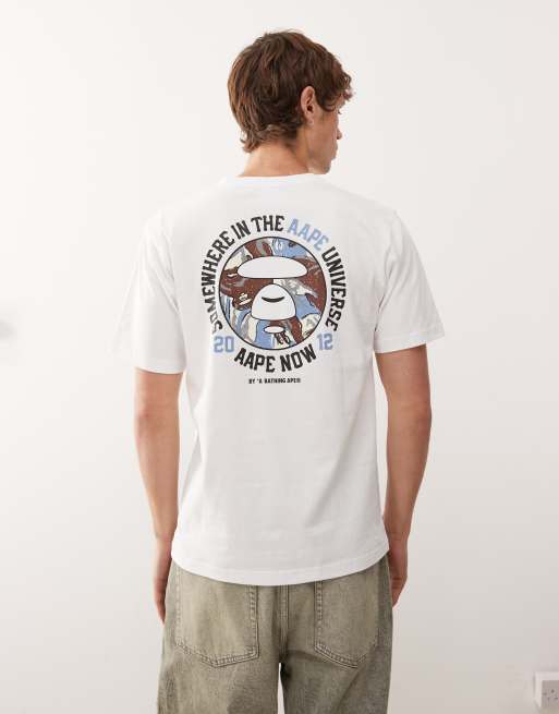 Aape By A Bathing Ape – Vit t-shirt med logga och tryck fram- och baktill