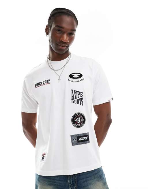Aape By A Bathing Ape® – Vit t-shirt med logga och tryck