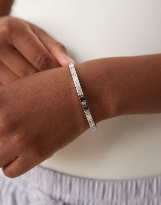 Abbott Lyon – Silverpläterat, stelt armband i vattentåligt, rostfritt stål med kristallhjärta