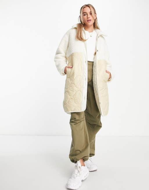 Abercrombie & Fitch – Beige vadderad kappa av blandade material i lång modell