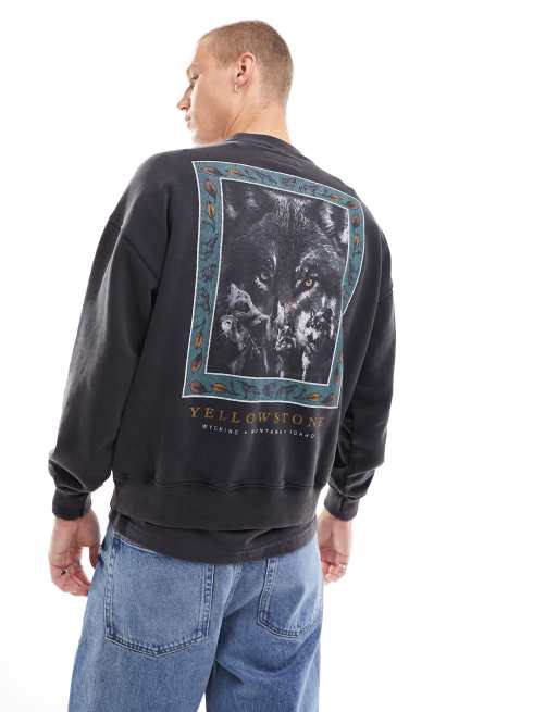 Abercrombie & Fitch – Bleksvart sweatshirt med "Yellowstone National Park"-tryck baktill